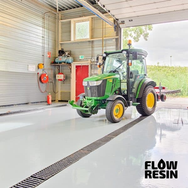 Pour les zones avec des charges lourdes ou des outils qui tombent, il est recommandé de poncer la couche d’apprêt avec Flow Resin Heavy Duty. Après le ponçage et le dépoussiérage, appliquez le revêtement de sol. Cela augmente l’adhérence et rend le sol plus antidérapant et plus résistant.